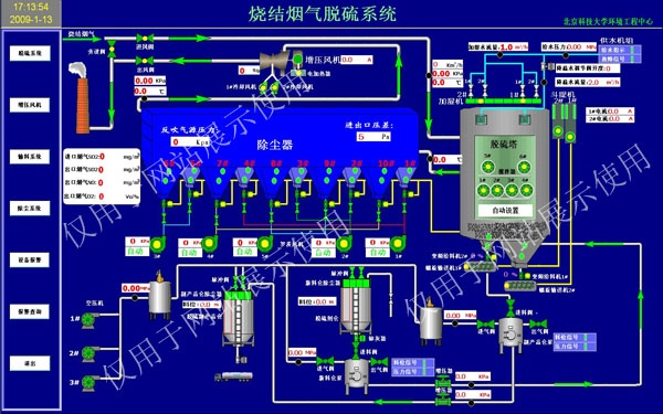 煙氣脫硫控制系統(tǒng)。該系統(tǒng)可根據(jù)企業(yè)不同煙氣溫濕度及二氧化硫氮氧化物等成分不同的實際工況,通過算法優(yōu)化控制方法,提高脫硫系統(tǒng)的自動化程度,在保證脫硫效率的前提下,降低原材料和能源的消耗,降低脫硫系統(tǒng)的運行成本。