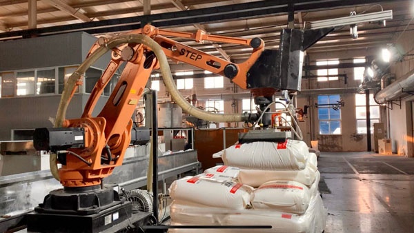 防排水板智能拆垛上料裝備。該設備有針對性地設計了防排水板自動拆垛上料系統(tǒng)的軟硬件組成,尤其是機器視覺、電控和機器人方面,完成了系統(tǒng)的部署及應用。在機器視覺識別精準性方面,料袋中心的平均定位誤差不超過2.5cm。在運行速度方面,袋料的平均拆垛上料時間在50秒以內。